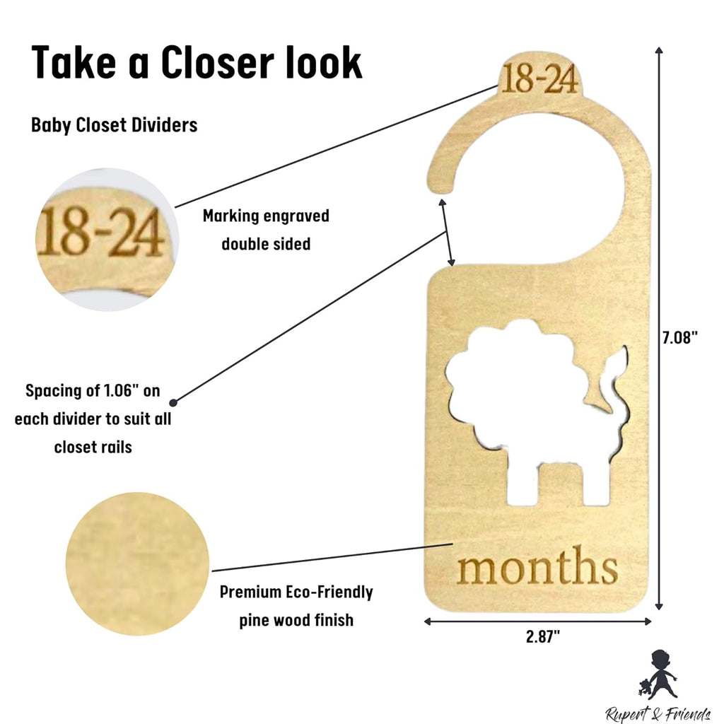 The set contains 8 unisex Baby Wardrobe Dividers/Hangers, they are animal themed and range from Newborn to 18-24 Months of age. We also included a special Daycare divider, which comes handy if you want to protect your little one’s BEST clothes.